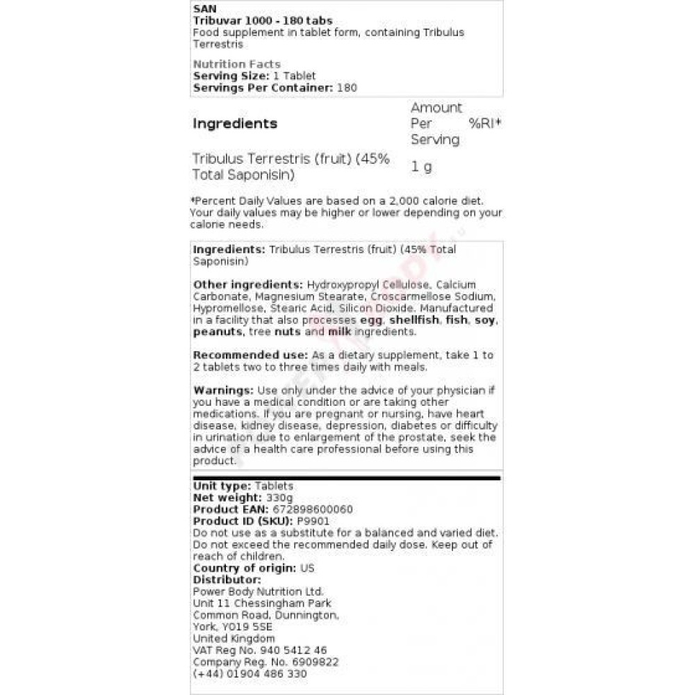 Specifikacije San - Tribuvar 1000 180 tablets San